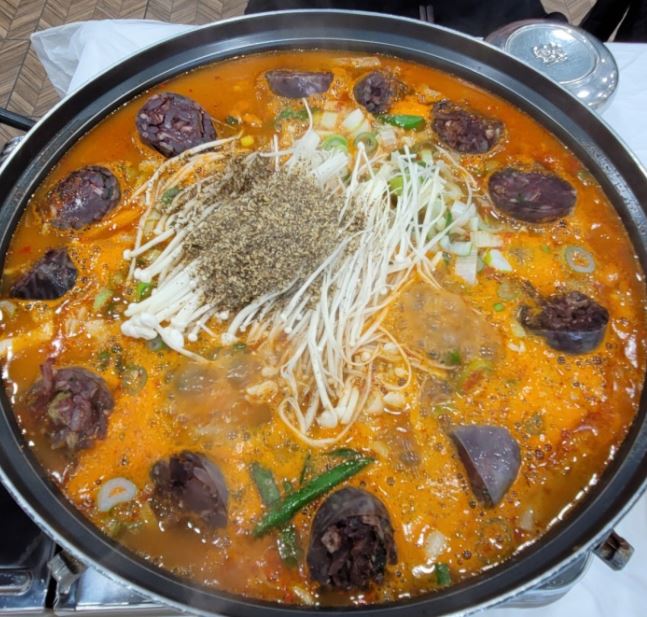 소금이아닌 초장에 찍어 먹는게 특징이며 대표메뉴중 하나인 순대국밥은 육수 맛이