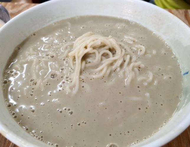 다진 채소와 다진고기가 넉넉하게 들어가고 얇은 면이 특징이다
