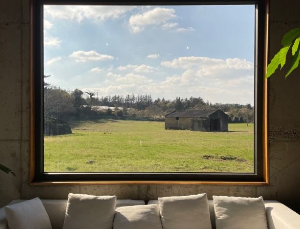 조천읍 동백로 68에 위치한 카페로 주위는 온통 숲과 들뿐이라 매력적인곳이다. 그런만큼 여유를 즐길수 있고 안에서 바라보는 뷰가 예술인곳이다. 카페 내부의 통창이 있어서 멋진 뷰를 볼수 있는곳으로 많은사람들이 제주도 동부 카페로 찾는다. 그렇다보니 명당자리를 잡으려고 늘 치열하다. 테이크아웃을 하기위해서는 개인컵을 소지하여아하는 특징이 있다. 환경보호를 위해 일회용 컵을 사용하지 않기때문이다.