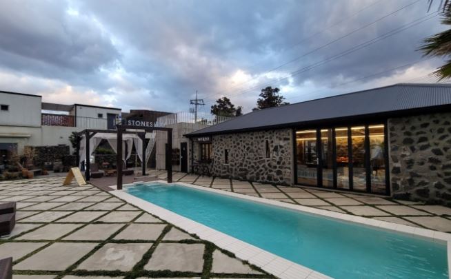 한경면 조수7길 8에 위치한 제주 서부 카페다. 주변환경과 건물외관이 이국적이라 마치 외국을 방문한듯한 느낌을 주는곳이다. 그와 다르게 내부는 상당히 빈티지스러운 인테리어를 자랑한다. 수영장위에 떠있는 공중그네가 랜드마크다. 수영장은 미온수로도 운영하기 때문에 가을 겨울에도 이용할수 있다. 대표메뉴는 금능바다빙수와 돌창고라떼가 유명하다. 금능바다빙수는 하늘빛의 얼음빙수에 초콜릿과 인절미가루가 푸짐하게 들어가 맛있다.
